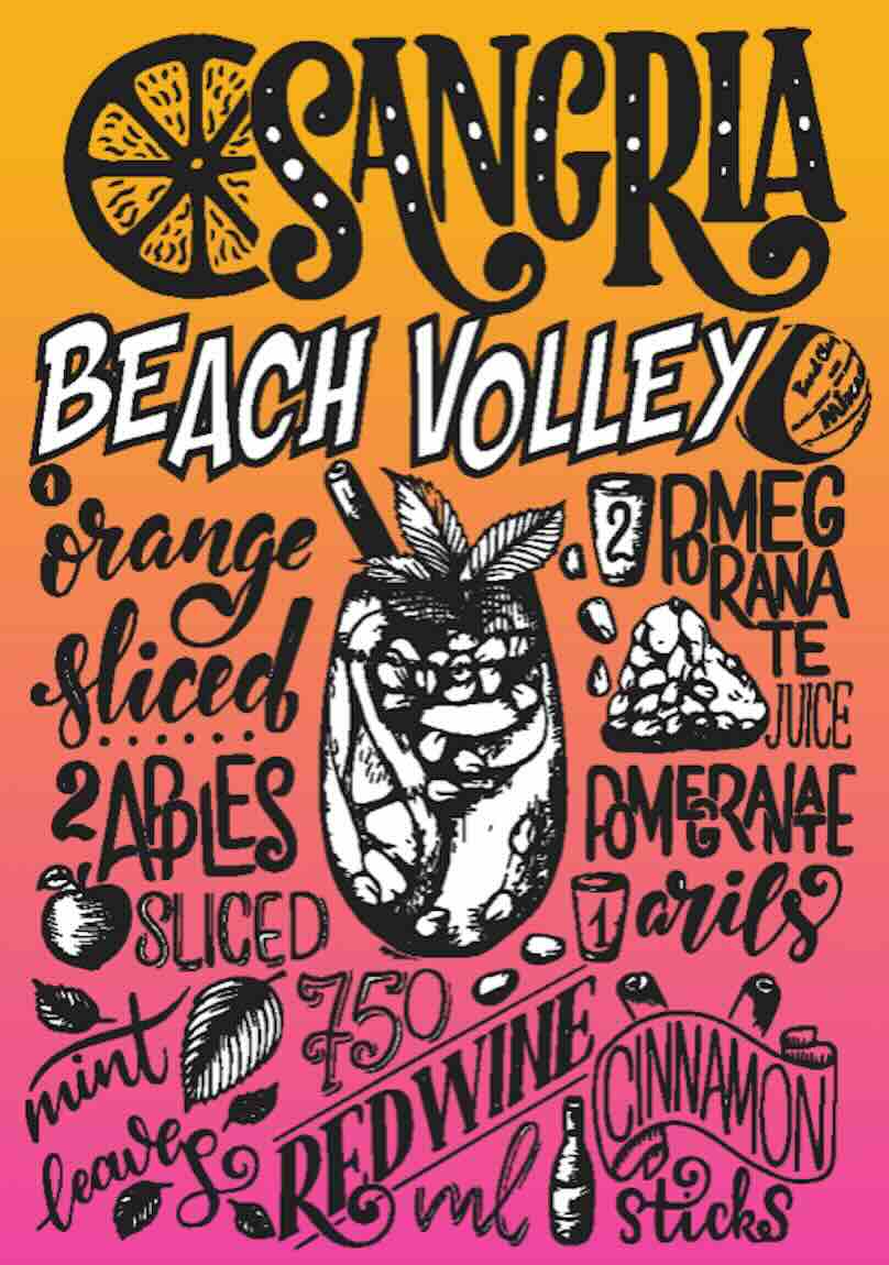 Il Sangria Beach Volley è decisamente un torneo a carattere "goliardico". È aperto a tutti, la formula è mista e la rete è posta a 2,35 mt. Le regole sono un mix tra beach e pallavolo così da facilitare il gioco ai partecipanti. Mentre la difficoltà è nel riuscire a dare continuità alla prestazione sportiva nonostante gli shot di sangria che saranno distribuiti ogni 5 minuti a tutti i presenti. Come se non bastasse la visuale del campo avversario è ostacolata da teli posti sulla rete. Inutile dire che il divertimento è allo stato puro.